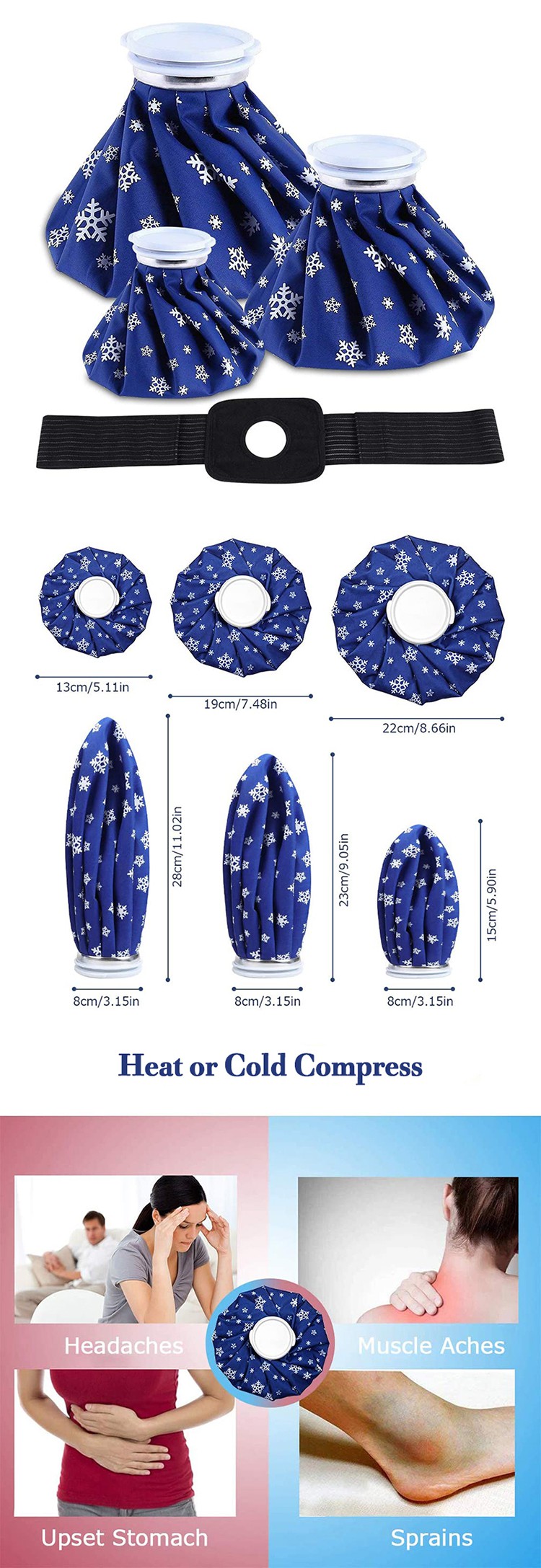 -Idealny do stosowania terapii zimnem, aby zmniejszyć ból i obrzęk spowodowany drobnymi zadrapaniami, stłuczeniami, bólami mięśni, skręceniami i nadwyrężeniami. Zalecany, aby pomóc złagodzić ból, zmniejszyć obrzęk i przyspieszyć powrót do zdrowia. Pozostaje zimny znacznie dłużej niż opakowania żelowe lub inne zimne okłady. Nadaje się do kontuzji sportowych i pierwszej pomocy